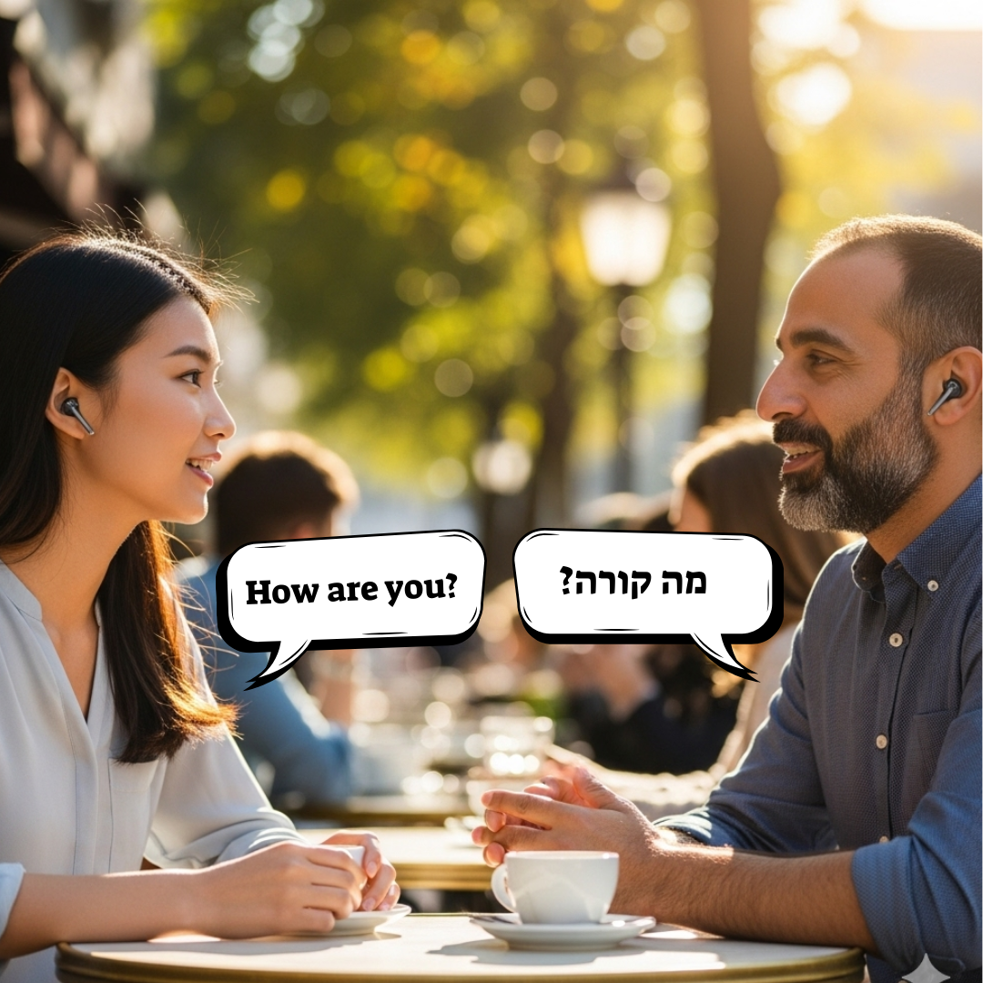 אוזניות התרגום החכמות שלנו פועלות בזמן אמת ומאפשרות לכם לנהל שיחות שוטפות